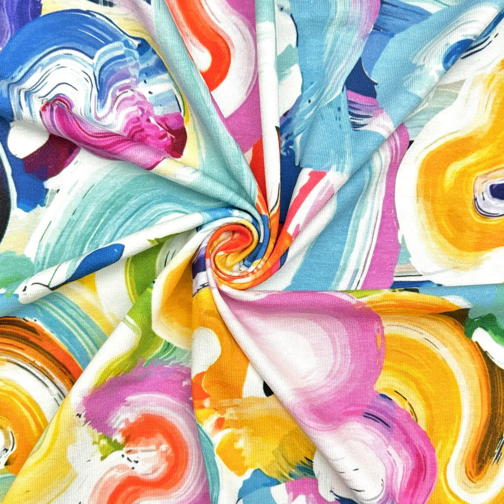 Transform your sewing projects with a fabric that combines artistic flair with unparalleled comfort. This Painted Motion Viscose Jersey is designed for those who value both style and movement, offering a breathable solution for high-quality handmade garments.