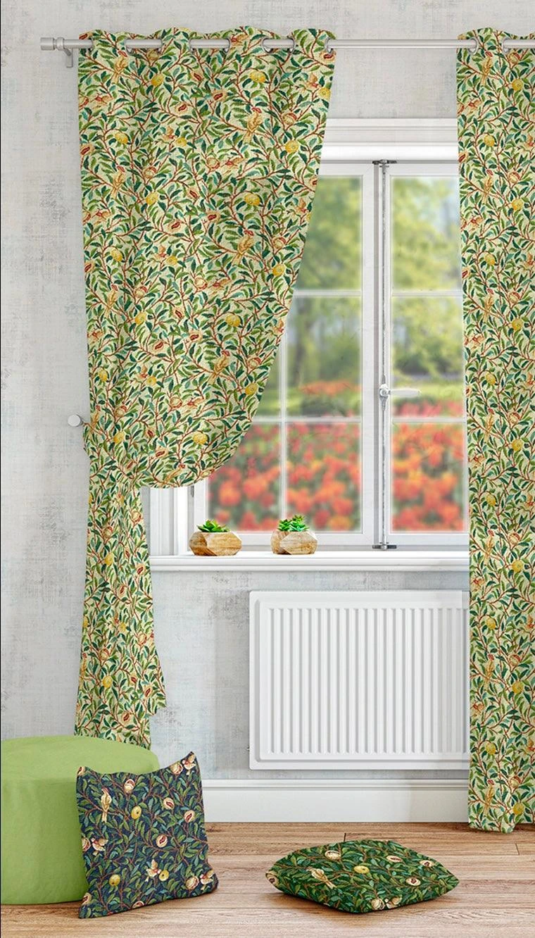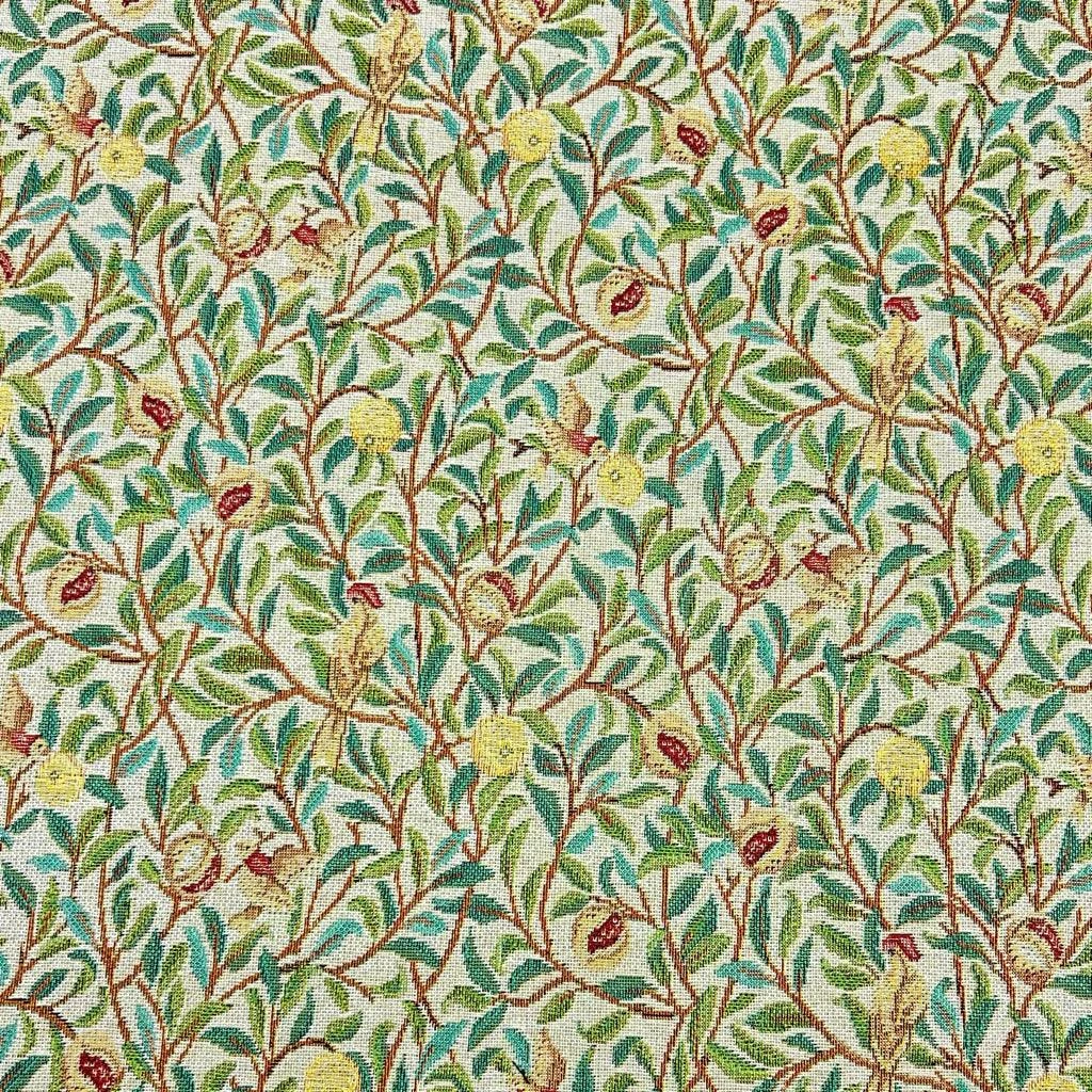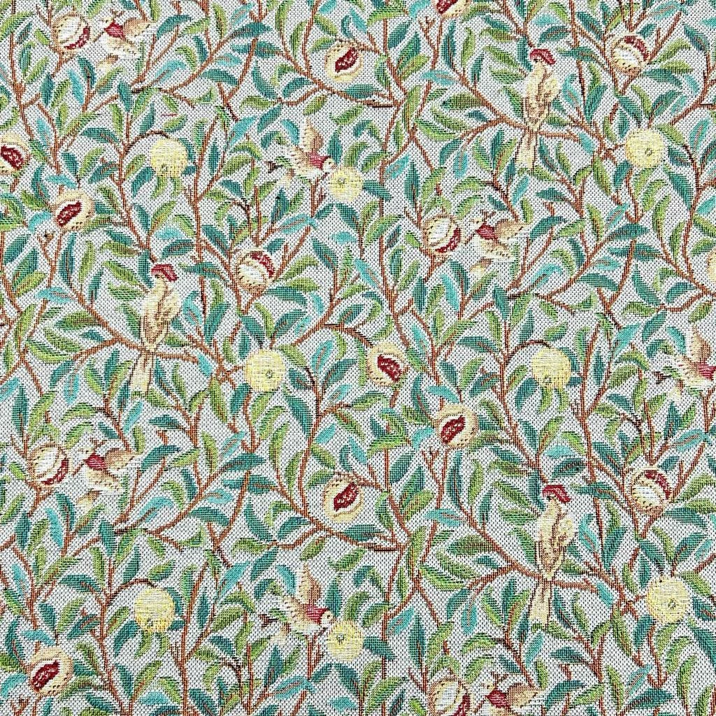 Our Birds and Fruits Tapestry Fabric is available in the colours: Beige, Red, Green, Blue, Light Grey