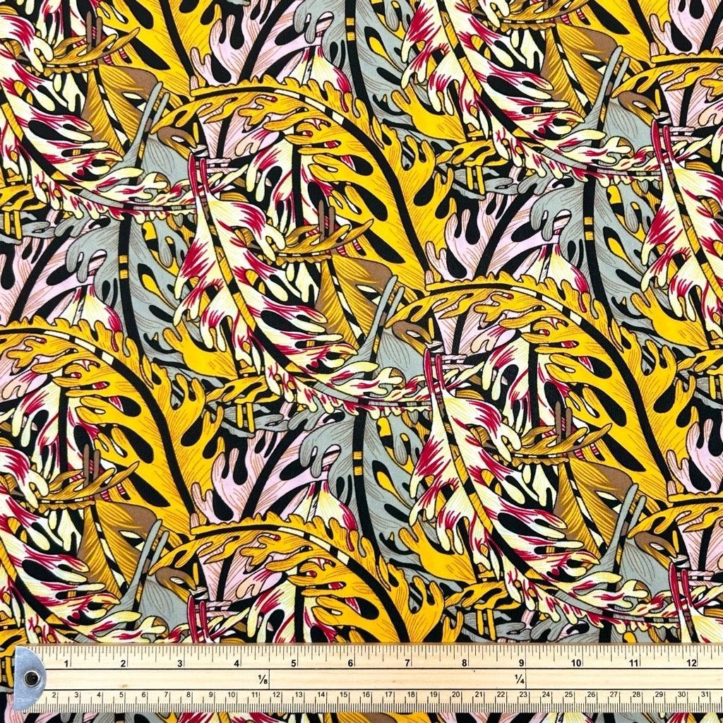 Transform Your Wardrobe with Vibrant Cartoon Leaves Crepe Fabric