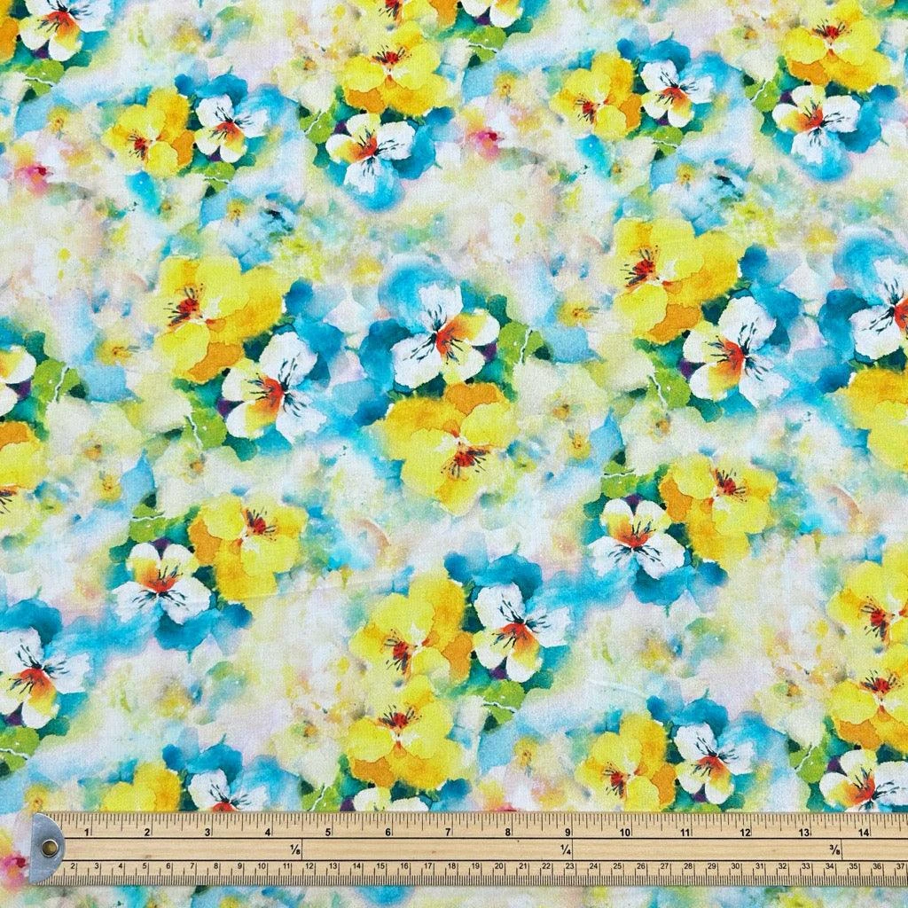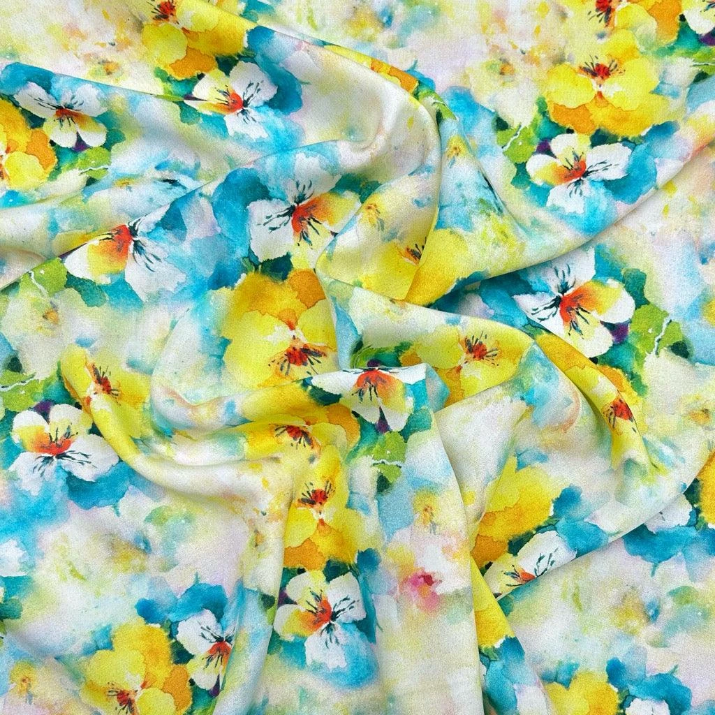- Design: Digitally Printed Blue and Yellow Blooms