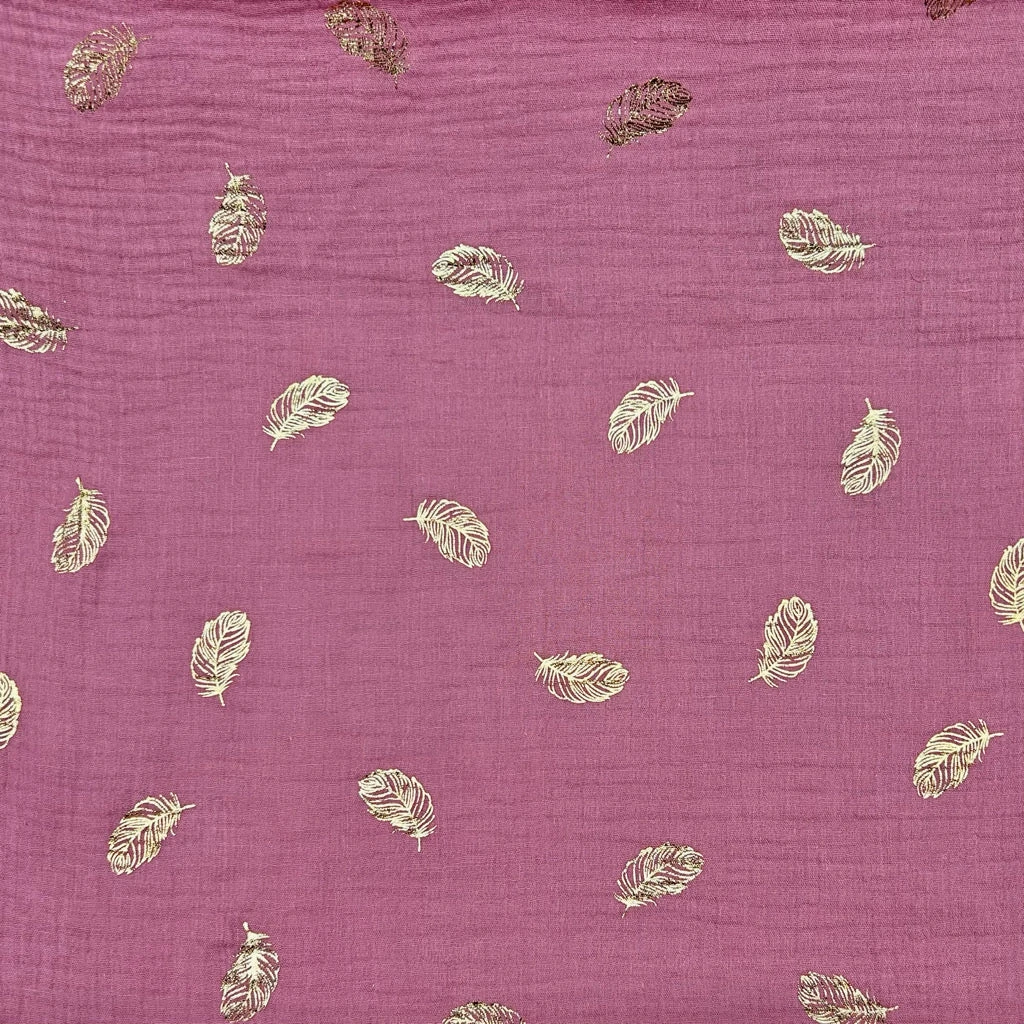 Gold Leaf on Dusky Pink Double Gauze Fabric – now available at the UK’s lowest price!