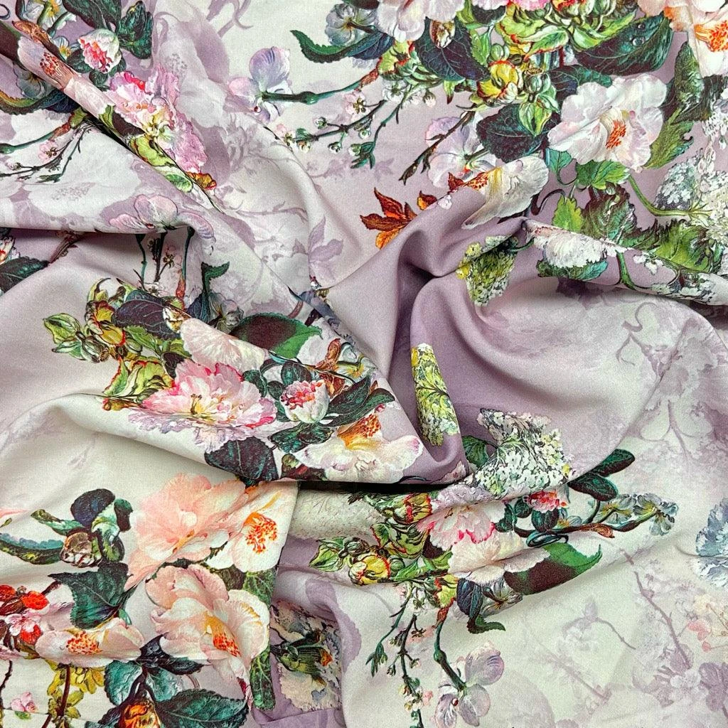 Finding a fabric that combines a delicate floral aesthetic with a professional-grade drape can be a challenge for dressmakers. This Lilac Meadow polyester fabric solves that problem, offering a lightweight, airy feel that is perfect for creating flowing silhouettes and comfortable everyday wear.