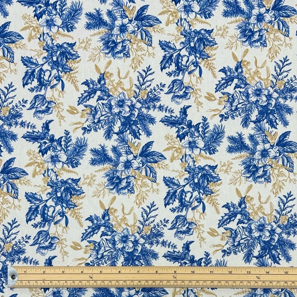 - Elegant Floral Aesthetic: Features a sophisticated blue and gold blossom pattern set against a clean ivory background, offering a timeless look for any season.