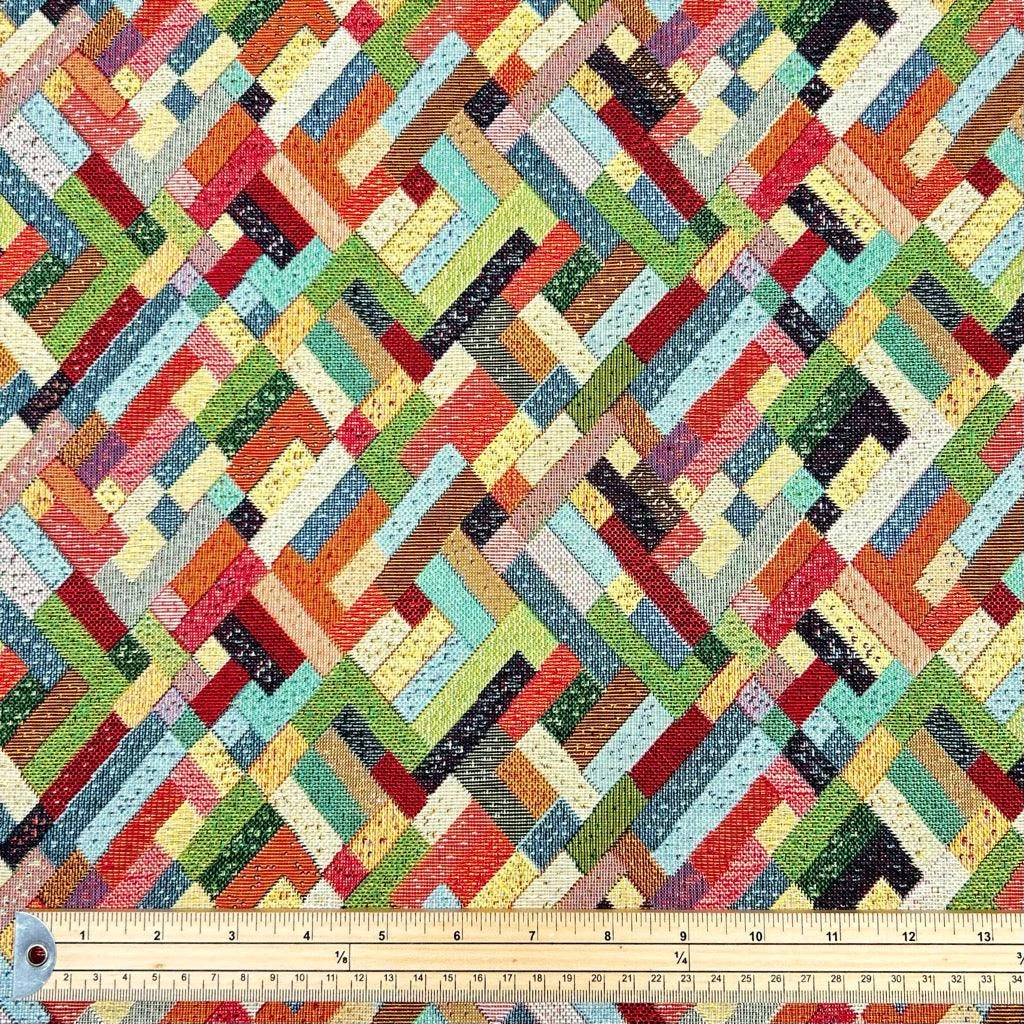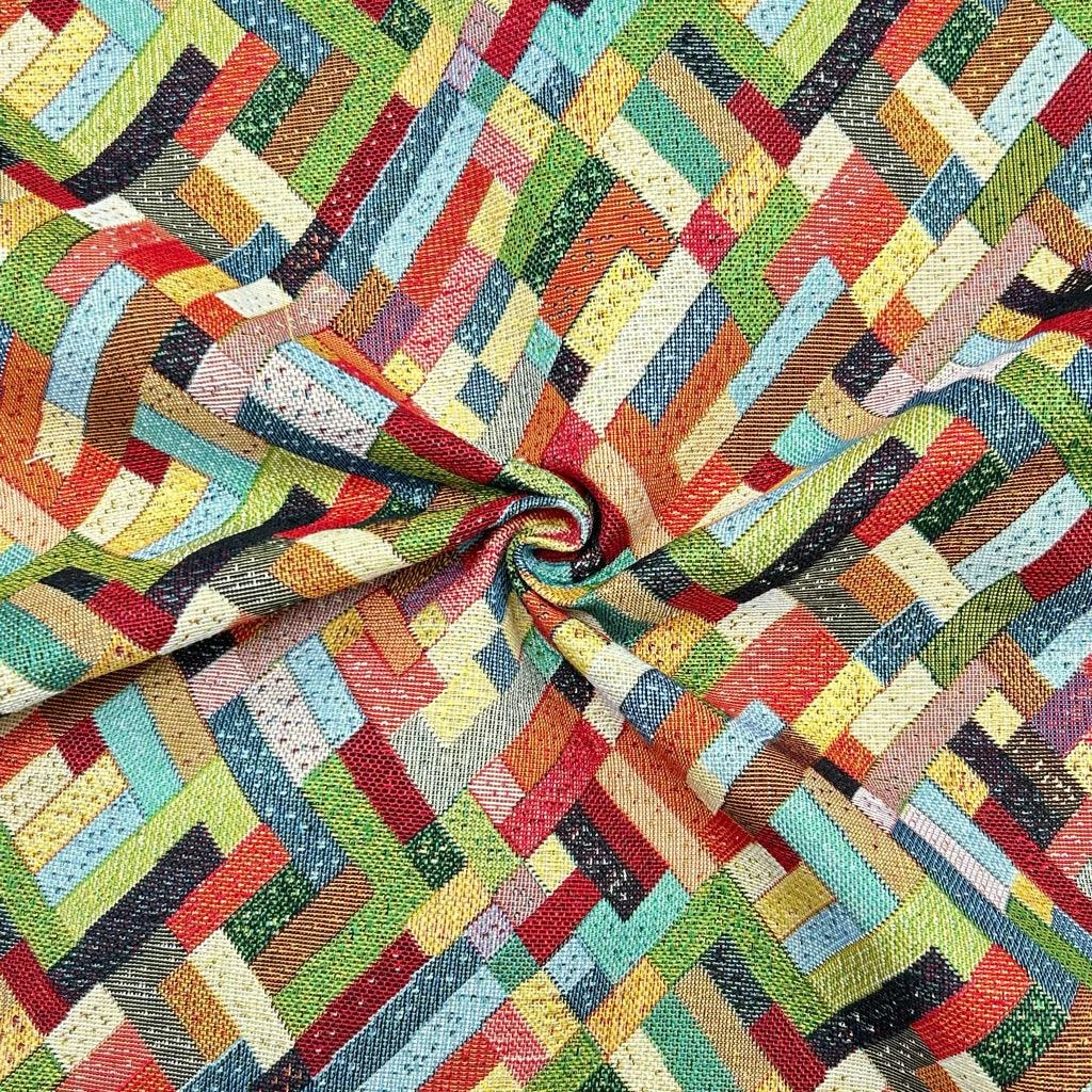 Transform your living space with this vibrant Multicoloured Blocks Tapestry Fabric. Perfect for those looking to add a contemporary, artistic touch to their home, this heavy-duty woven material combines durability with high-end style to refresh tired furniture or create stunning window treatments.
