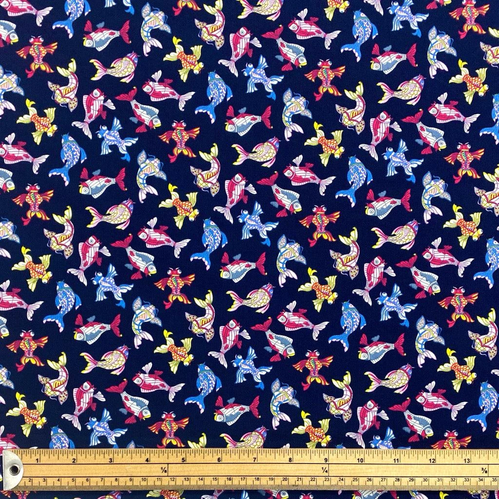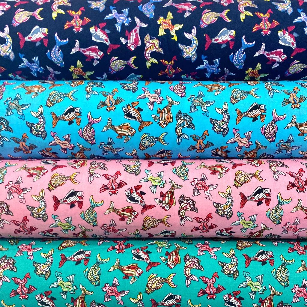 Multicoloured Fish Rose & Hubble Cotton Poplin Fabric – now available at the UK’s lowest price!