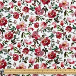 Premium Red Flower Garden Cotton Jersey Fabric – 4-Way Stretch
