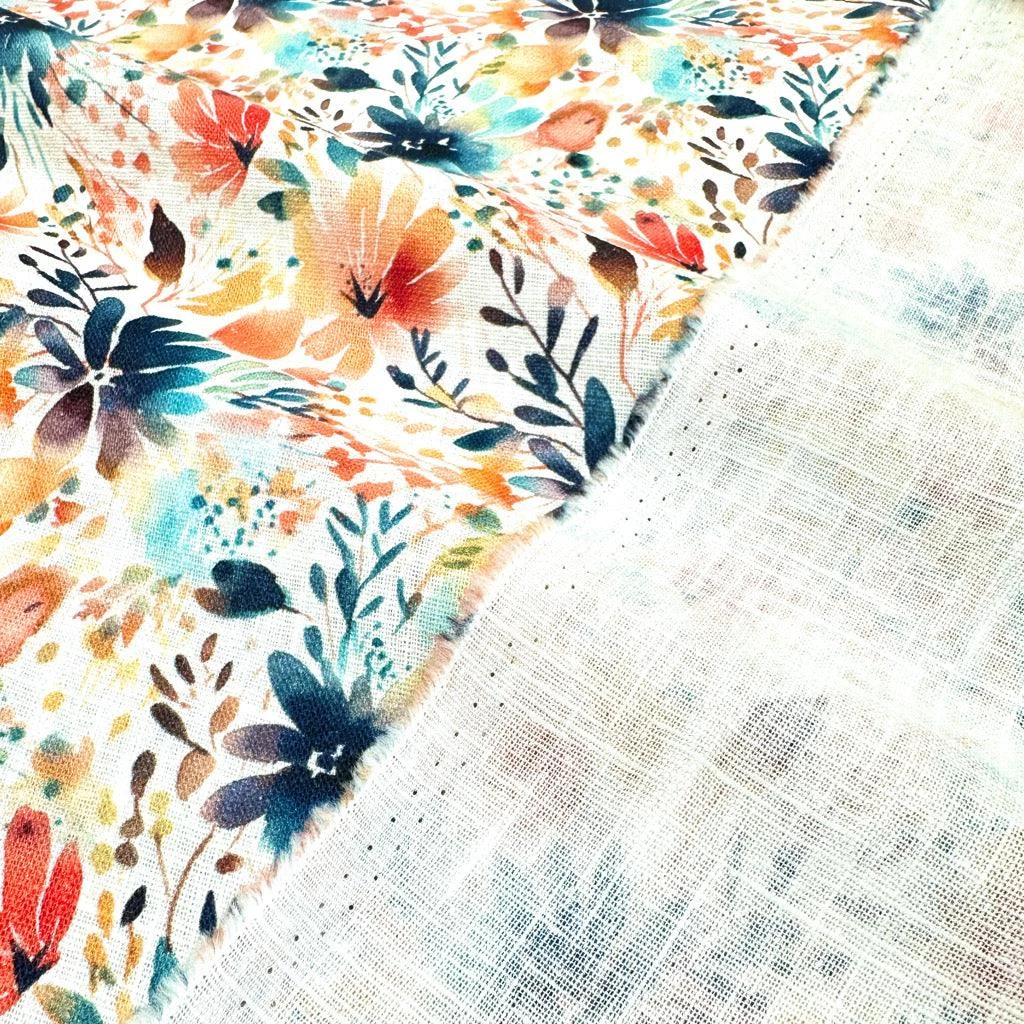 Finding the perfect balance between breathable comfort and a polished look can be a challenge when sewing summer attire. Our Orange and Midnight Floral Linen Blend Fabric offers the ideal solution. Featuring a striking digitally printed pattern, this fabric combines the rustic charm of linen with the softness of cotton, ensuring your creations look stunning and feel even better against the skin throughout the day.
