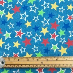 Rose & Hubble Multi-Colored Stars Denim Look Cotton Poplin Fabric