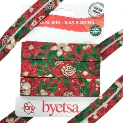 Premium Holly & Flowers Christmas Cotton Bias Binding – 18mm Wide (5m Pack)