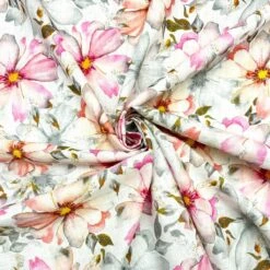 Premium Red Flower Garden Cotton Jersey Fabric – 4-Way Stretch