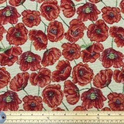 Floral Tapestry Fabric with Daisies and Poppies – Durable Curtain & Upholstery Material