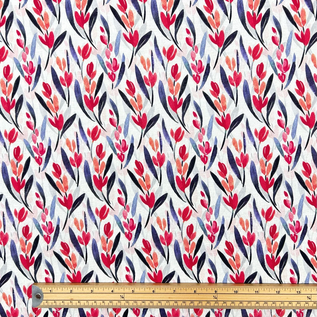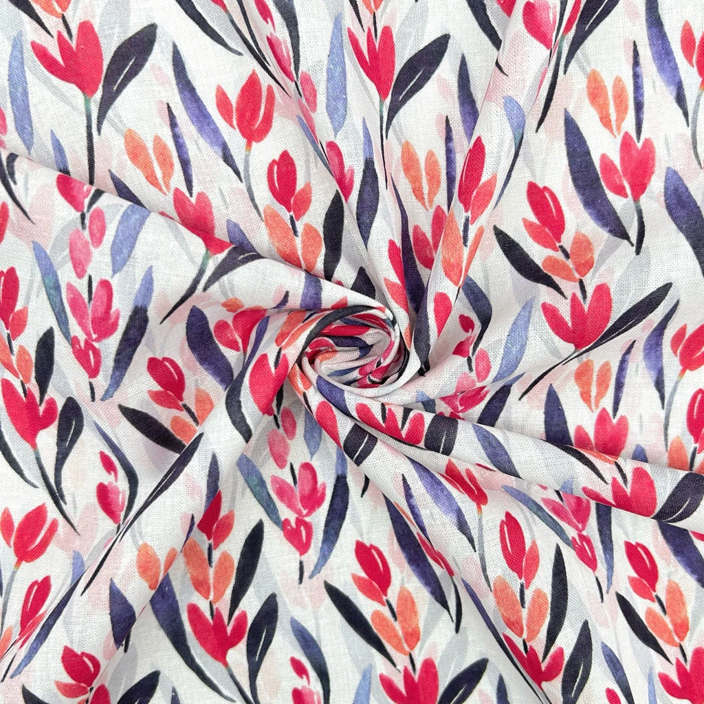 Finding the perfect balance between comfort and style can be difficult when selecting garment fabrics. Our Radiant Blooms Cotton Linen Blend offers a breathable, lightweight solution that doesn’t compromise on aesthetic appeal. Featuring a vibrant digitally printed floral and leaf motif, this fabric provides a professional finish and a high-end feel for all your DIY fashion projects.