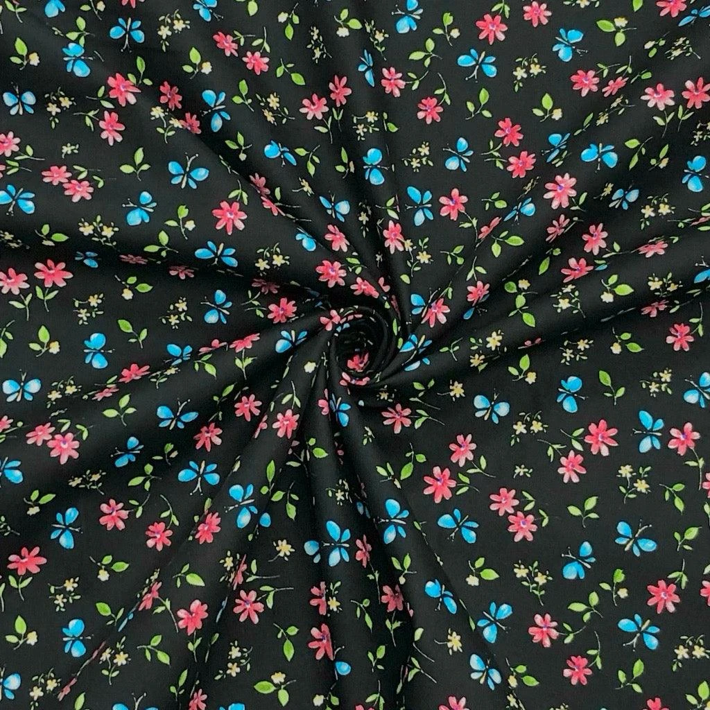 Experience the timeless elegance of the Rose & Hubble collection with this stunning Butterfly and Floral Cotton Poplin. Featuring a delicate and vibrant design available in four beautiful colorways, this fabric combines the heritage of a trusted brand with the whimsical charm of nature. Perfect for creating standout garments and bespoke accessories, it offers a smooth finish and exceptional handle that sewists love for professional-looking results.