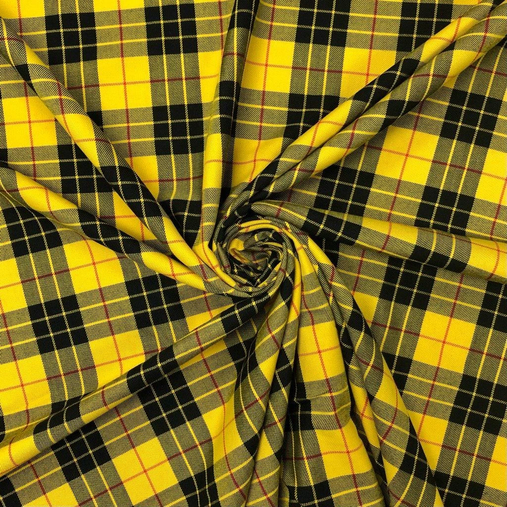 Finding a fabric that balances durability with a soft, elegant drape can be a challenge for dressmakers and crafters alike. This Yellow and Black PolyViscose Tartan Fabric solves that problem, offering a high-quality plaid check that looks as good as it feels. Whether you are creating a classic pleated skirt, a tailored dress, or a cozy winter scarf, this fabric provides the professional finish and comfort your projects deserve.